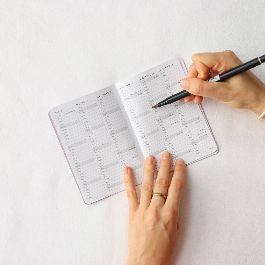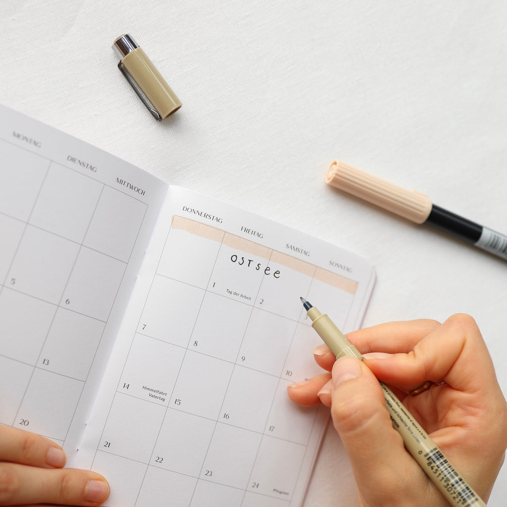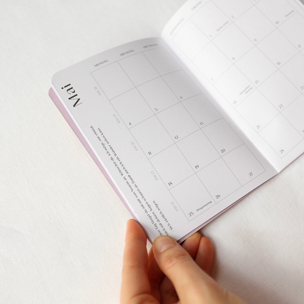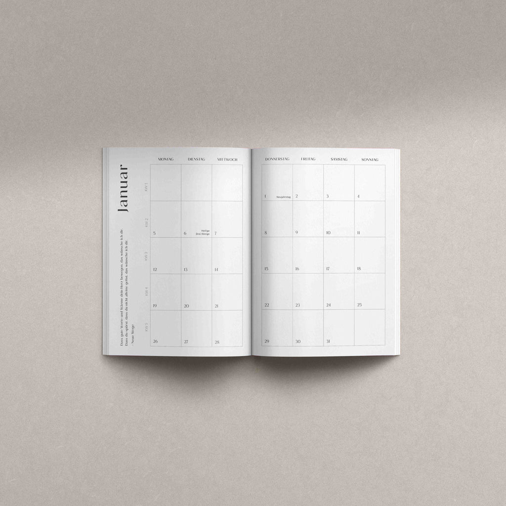 • Monatsübersichten auf Doppelseiten mit allen Feiertagen auf einen Blick