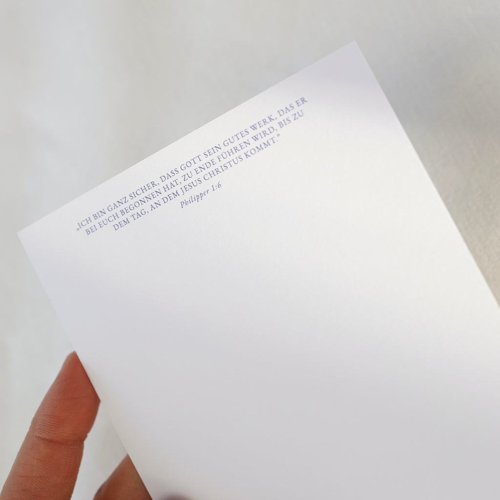 "und ich bin darin guter Zuversicht, dass der in euch angefangen hat das gute Werk, der wird’s auch vollenden bis an den Tag Christi Jesu."