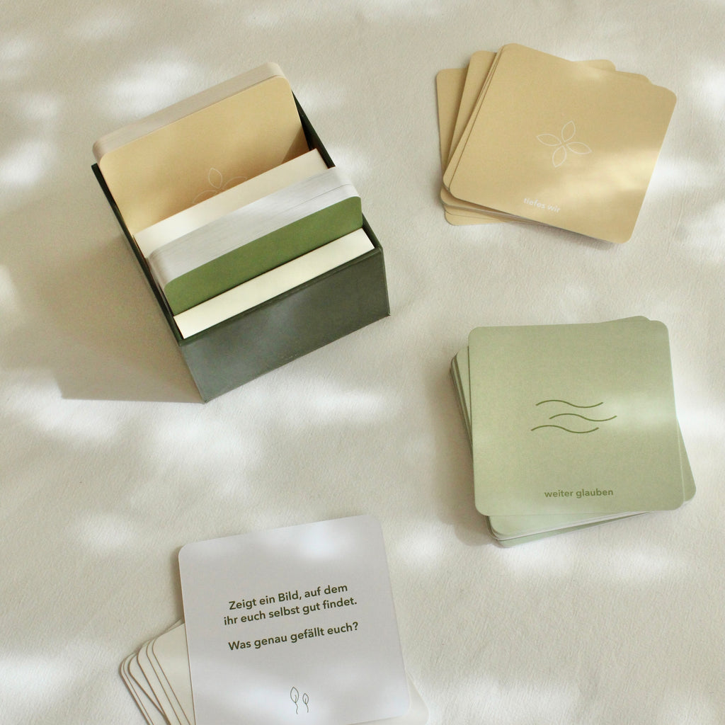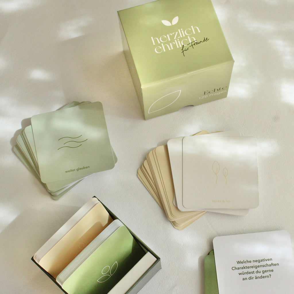 An gute Gespräche erinnert man sich lange zurück. Sie sorgen dafür, dass man sich besser kennenlernt, zusammenwächst, gemeinsam lacht und neue Seiten an sich und anderen entdeckt. Solche guten Gespräch müssen nicht rein zufällig entstehen. Bei der Fragebox »herzlich.ehrlich« ist der Name Programm. 120 Fragekarten sorgen auf spielerische Weise für Gesprächsthemen. Einfach eine Karte ziehen und überraschen lassen, wohin die Gespräche führen. Perfekt für Freunde, kleine Gruppen, Hauskreise und alle, die sich besser kennenlernen wollen.