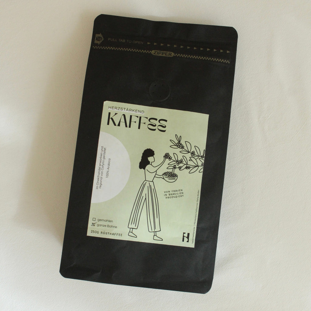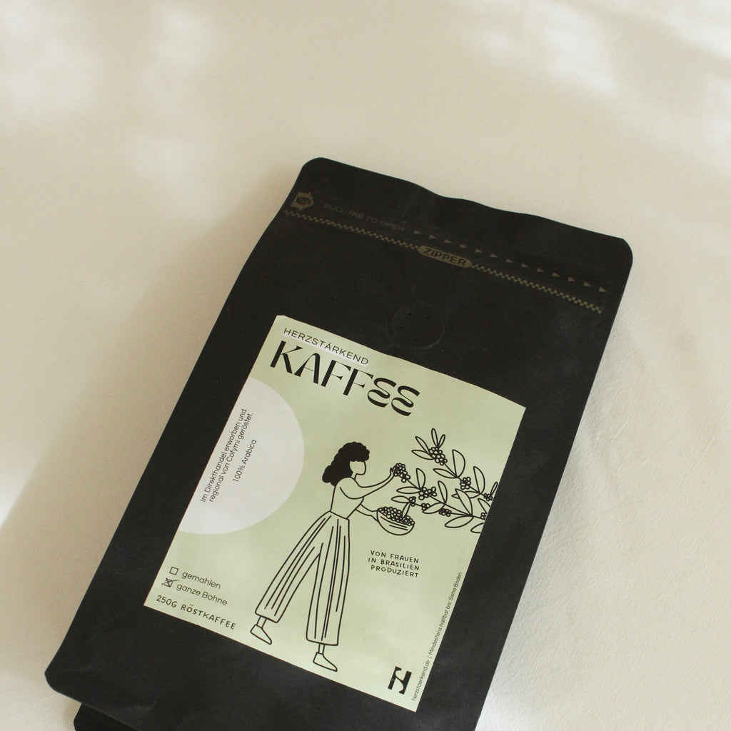 Adriana (auf dem Foto links) kennen wir aus ihrem Café "Dona Sa" in Tübingen. Ihr Herz schlägt für Frauen in der Kaffeeindustrie. Sie arbeitet mit Frauen in Brasilien zusammen, die ihre eigenen Kaffeebetriebe leiten. Adrianas Vision ist es, dass Frauen wirtschaftlich unabhängiger werden und faire Löhne für ihre Arbeit erhalten. Ines (auf dem Foto rechts) ist eine dieser Kaffeebäuerinnen. Da uns ihr Kaffee, der als Spezialitätenkaffee geprüft wurde, überzeugt hat, haben wir uns entschieden ihre Bohnen zu importieren und daraus eine eigene herzstärkend Röstung zu kreieren.